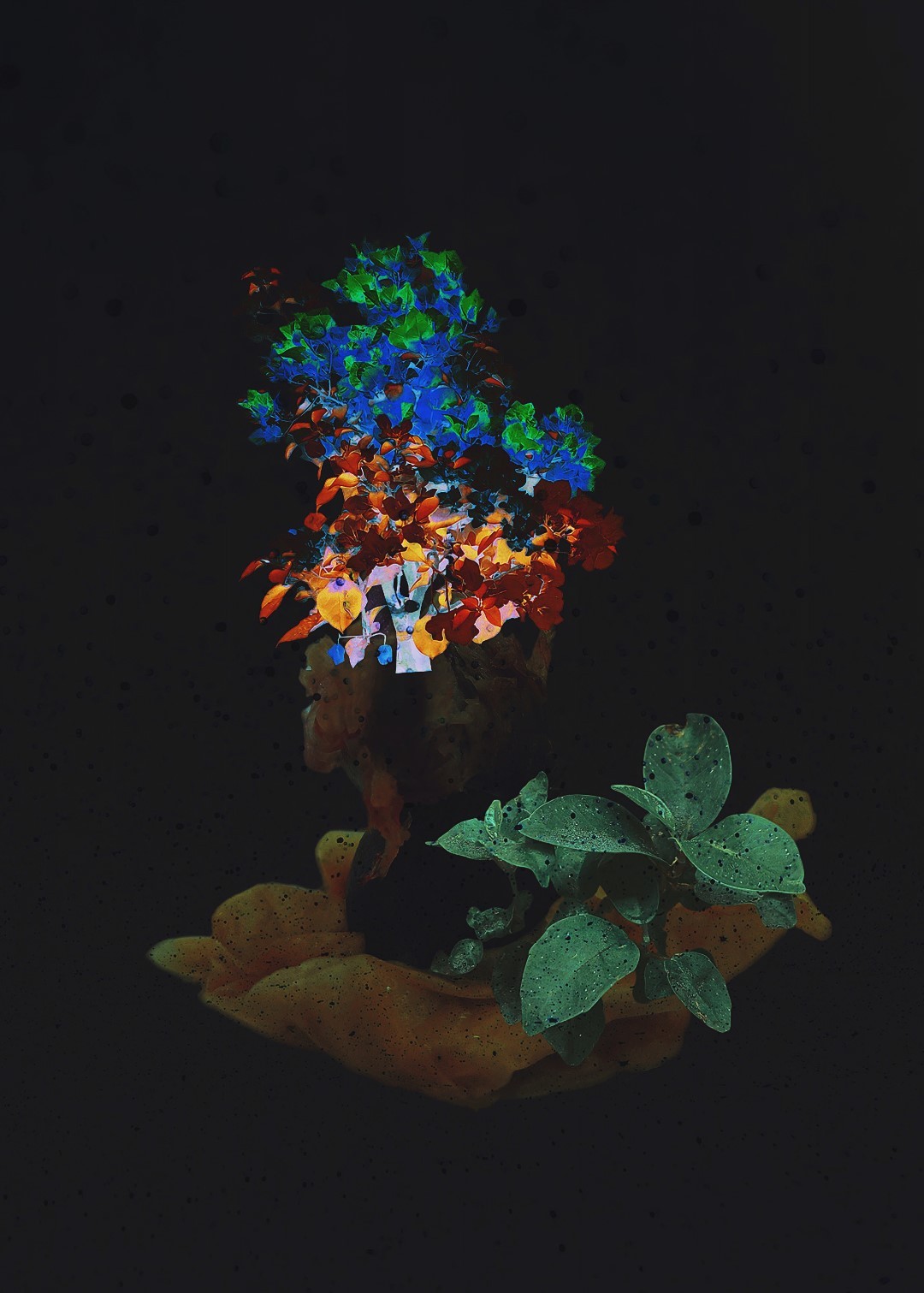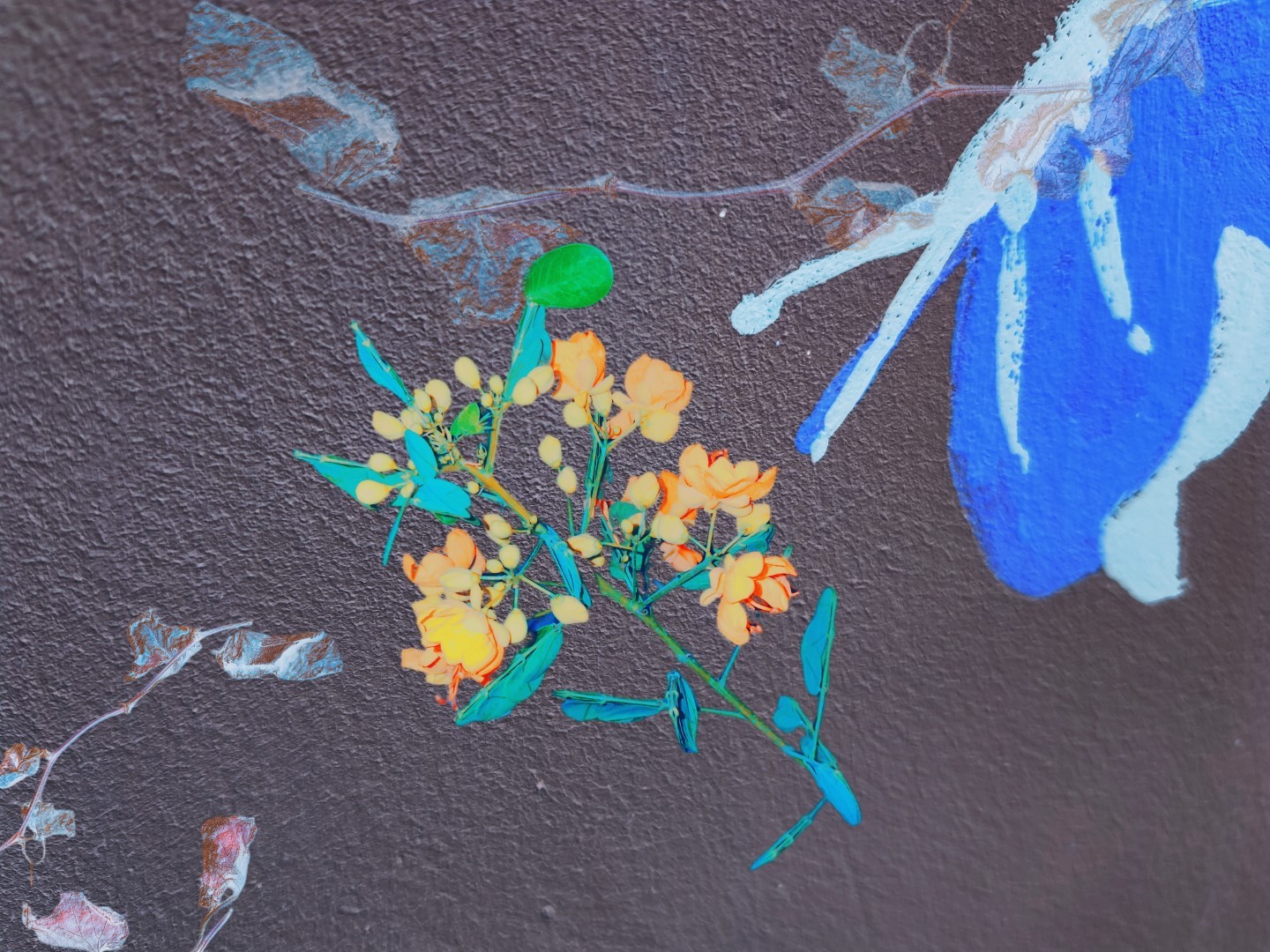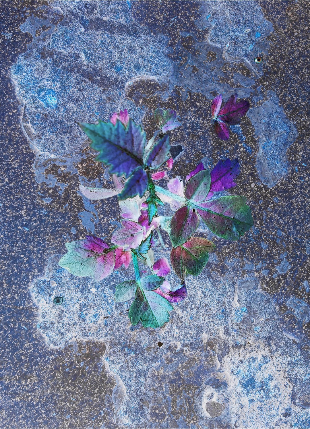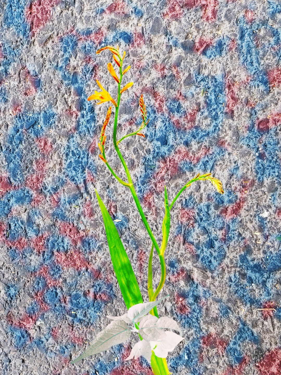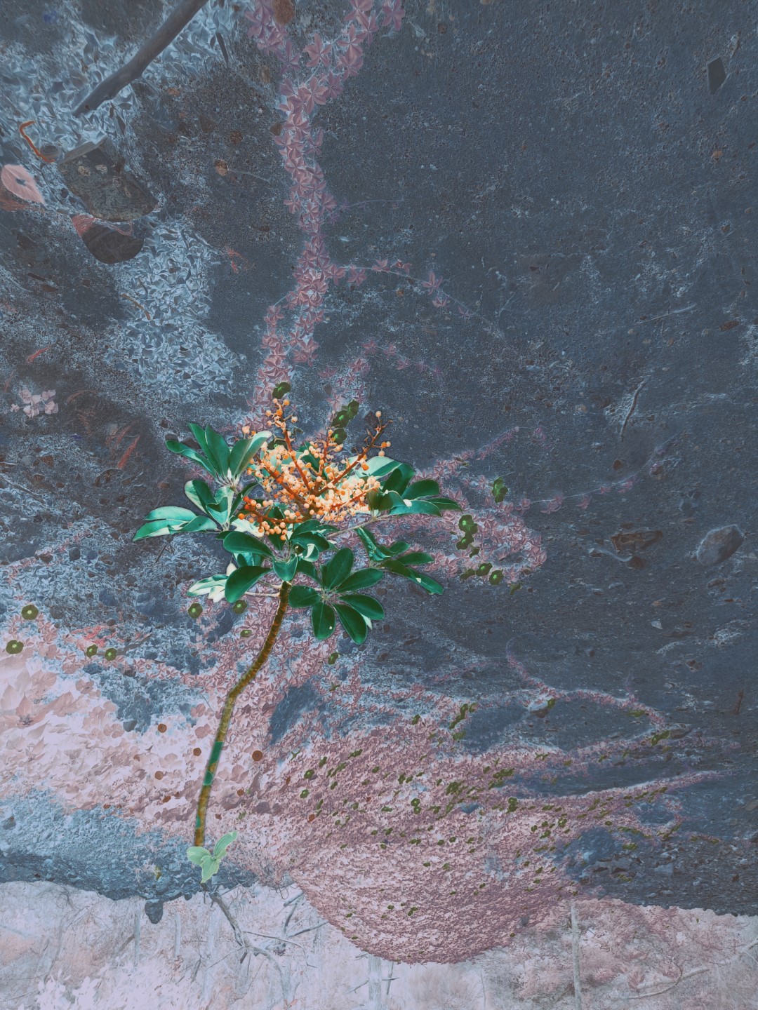 y-55 to y-59 "Fallen Leaves at Home": All five photos in "Fallen Leaves at Home" were taken on my home terrace. It was a day in the summer of 2022 when our community was suddenly locked down. All residents were forbidden to leave their homes except for daily nucleic acid testing at a designated time and place. A neighbor, whose house was separated from mine by one building, couldn't even go downstairs for the test. The occurrence of this event was without any notification or announcement. Neighbors could only guess that a positive case was detected in the building that couldn't go downstairs for the test. The lockdown of the community has happened many times in the city where I live, so I was very calm during the first three days. When I went downstairs for the test and waited in line, I would sneak pictures of the flowers planted by my neighbors (the control staff did not allow us to take pictures, fearing cross-contamination). We spent three peaceful days like this, and everyone's test results were negative.