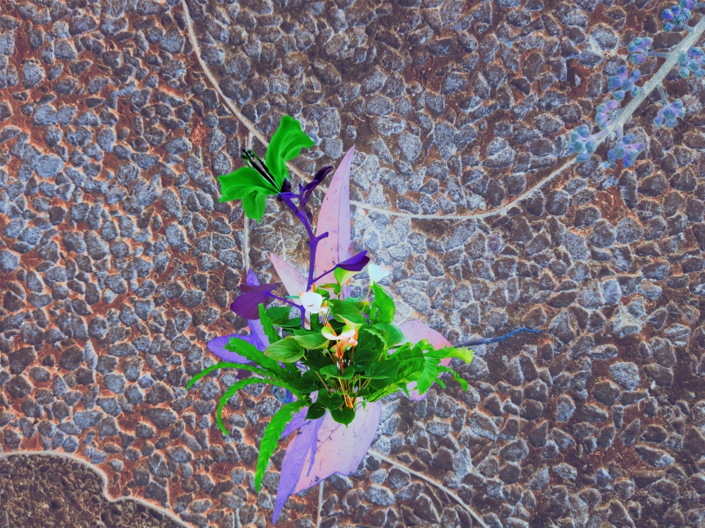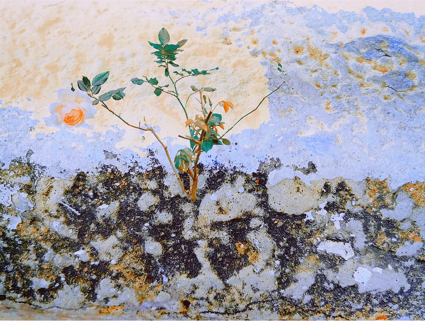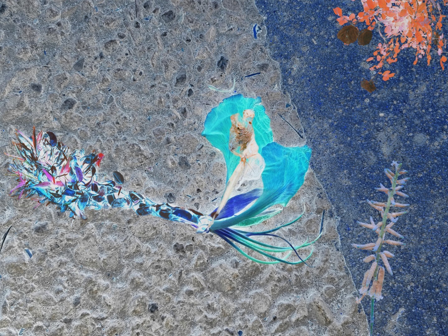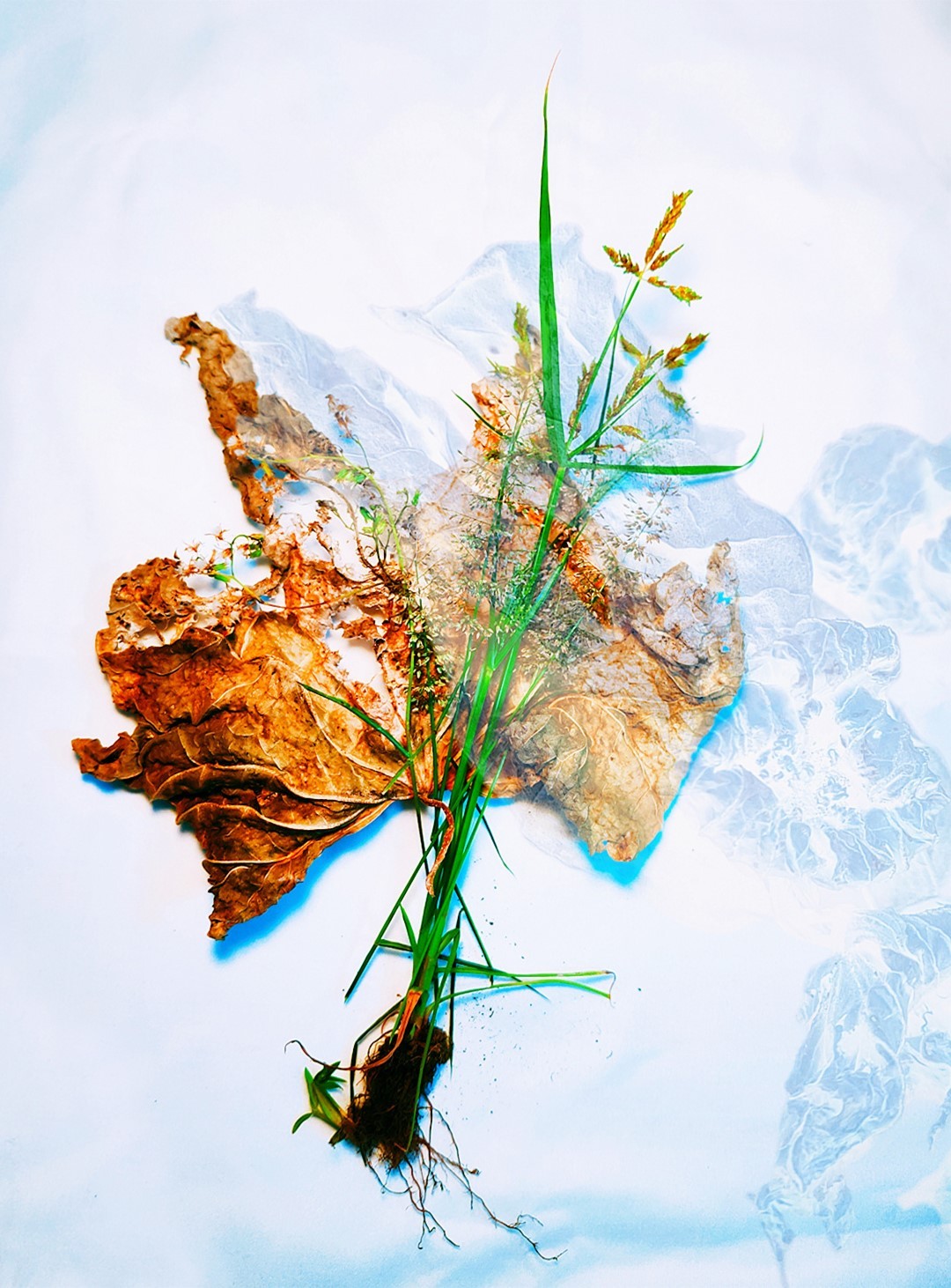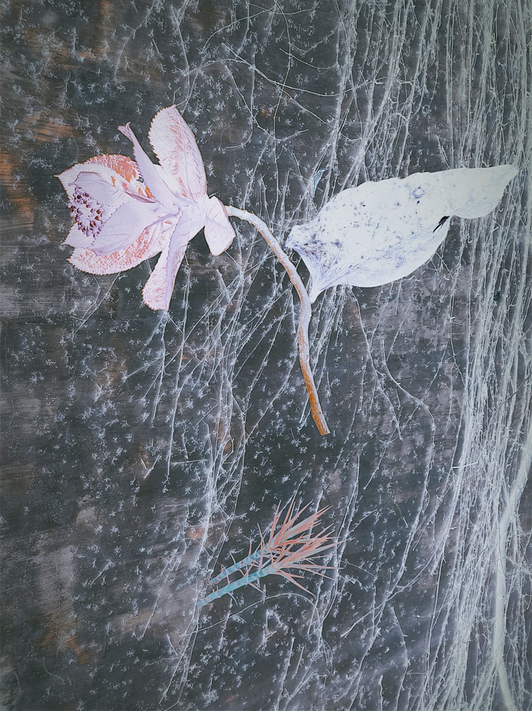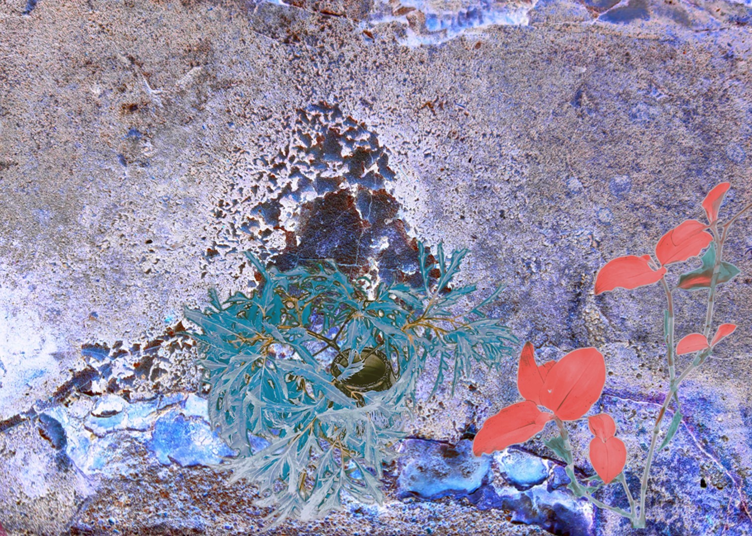 y-55 to y-59 "Fallen Leaves at Home": All five photos in "Fallen Leaves at Home" were taken on my home terrace. It was a day in the summer of 2022 when our community was suddenly locked down. All residents were forbidden to leave their homes except for daily nucleic acid testing at a designated time and place. A neighbor, whose house was separated from mine by one building, couldn't even go downstairs for the test. The occurrence of this event was without any notification or announcement. Neighbors could only guess that a positive case was detected in the building that couldn't go downstairs for the test. The lockdown of the community has happened many times in the city where I live, so I was very calm during the first three days. When I went downstairs for the test and waited in line, I would sneak pictures of the flowers planted by my neighbors (the control staff did not allow us to take pictures, fearing cross-contamination). We spent three peaceful days like this, and everyone's test results were negative.