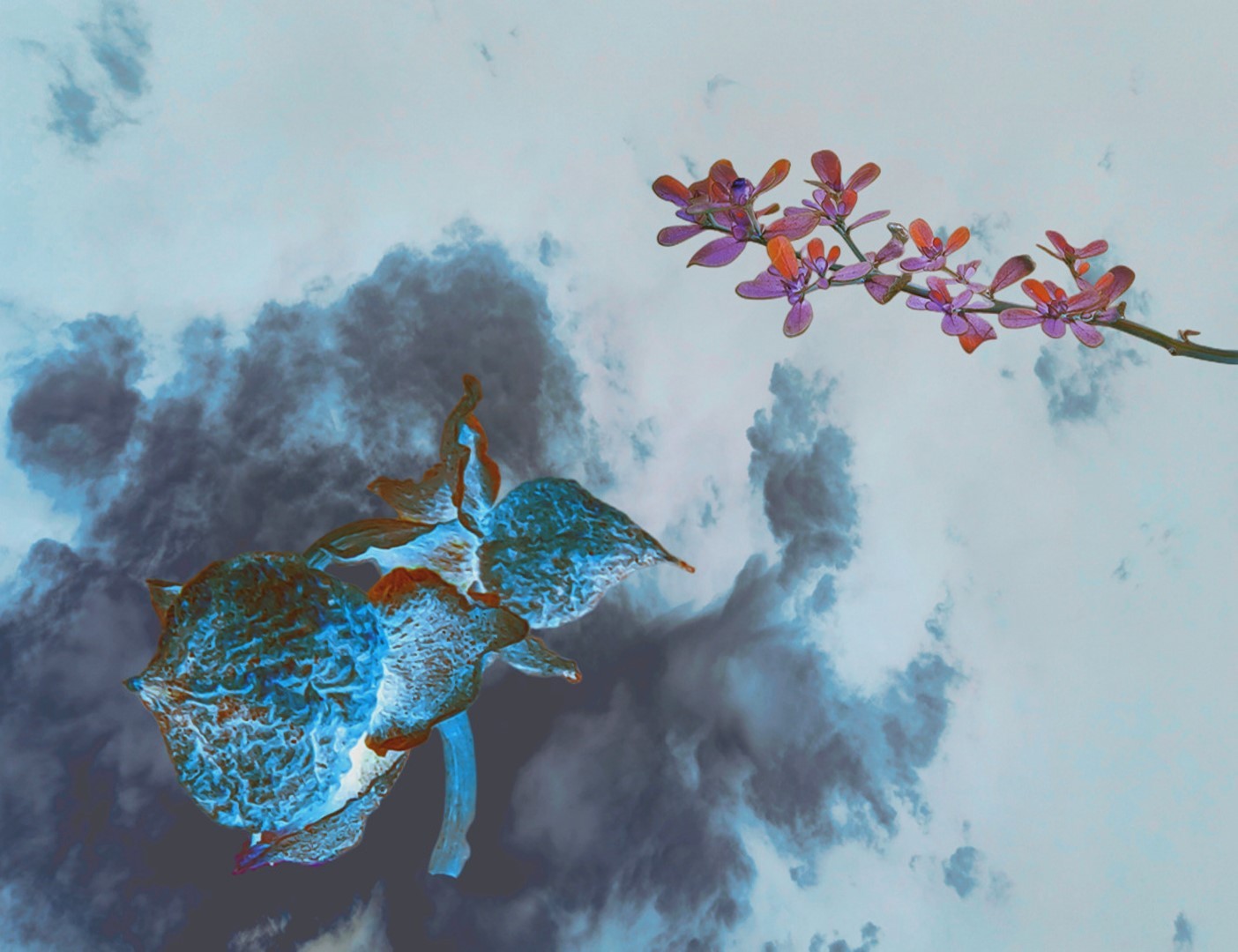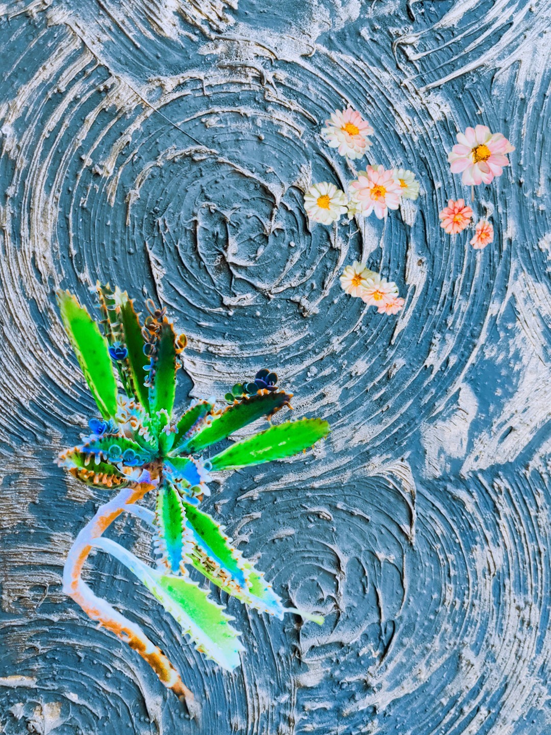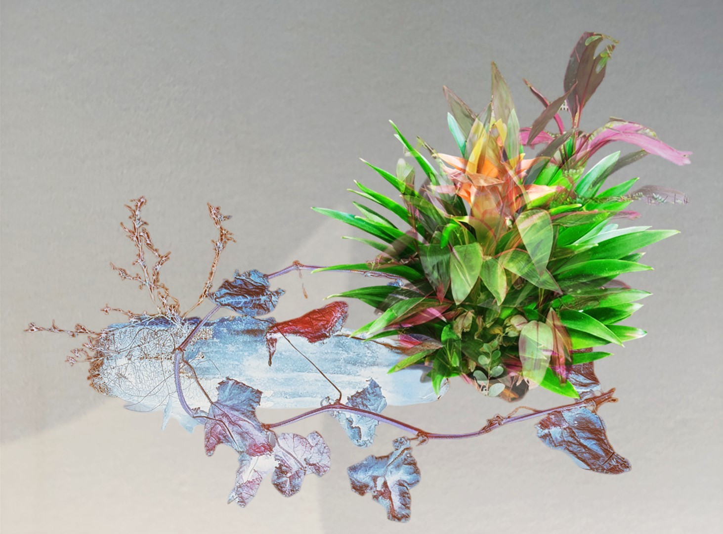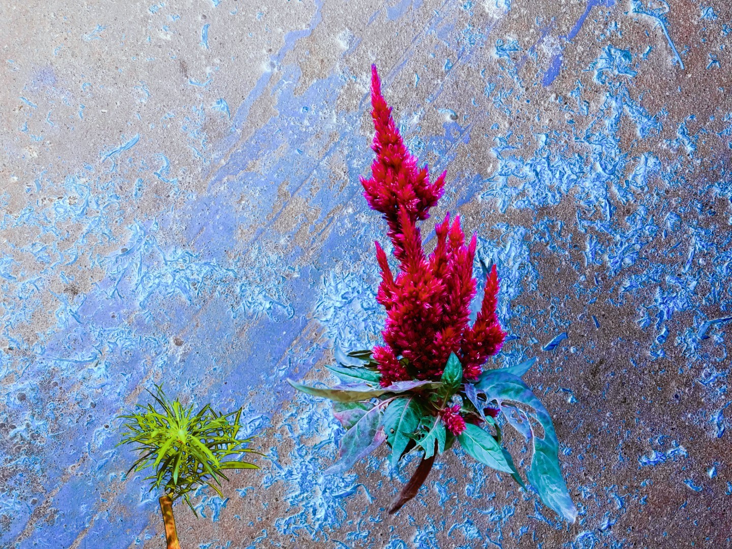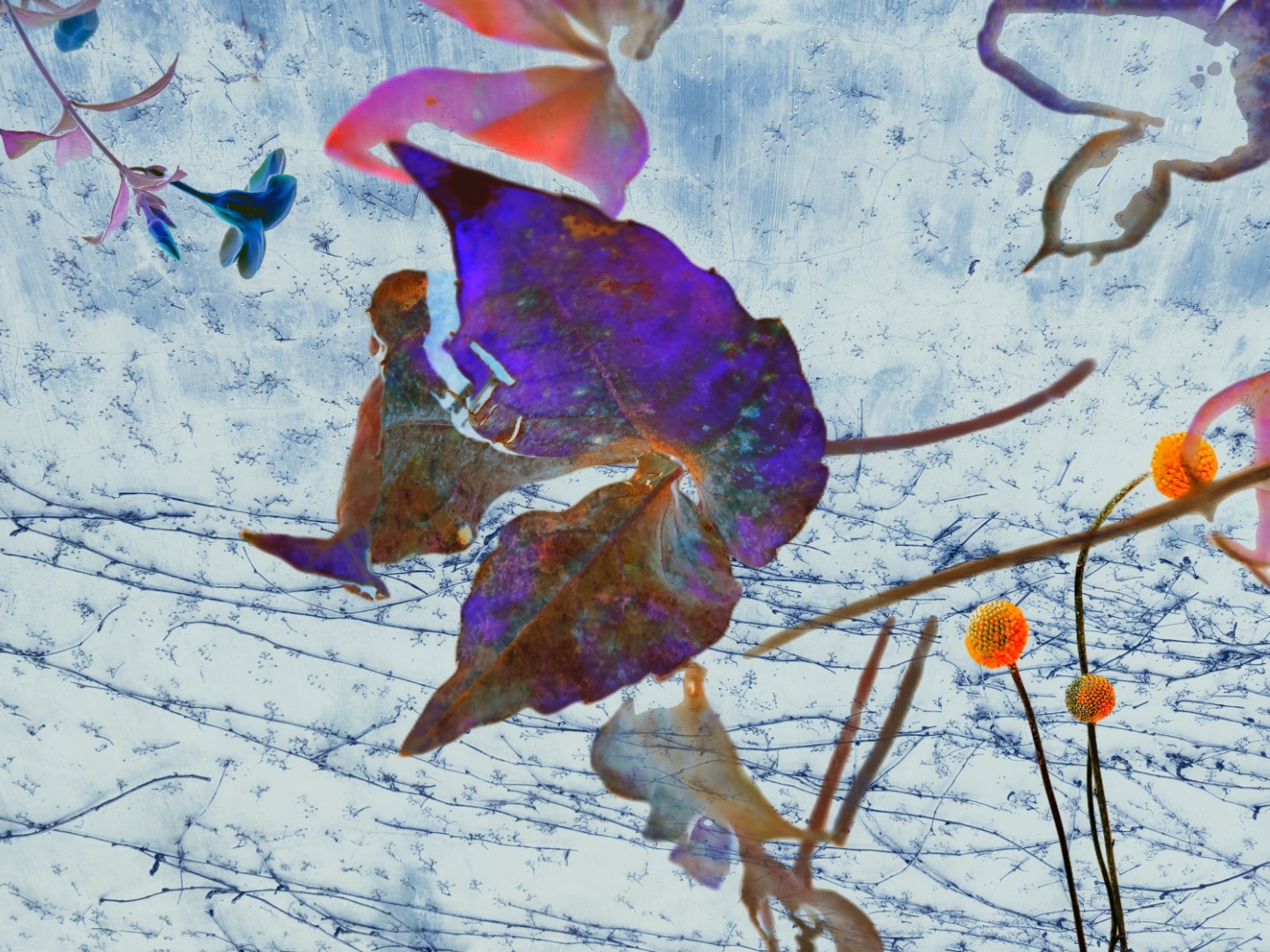 y-55 to y-59 "Fallen Leaves at Home": All five photos in "Fallen Leaves at Home" were taken on my home terrace. It was a day in the summer of 2022 when our community was suddenly locked down. All residents were forbidden to leave their homes except for daily nucleic acid testing at a designated time and place. A neighbor, whose house was separated from mine by one building, couldn't even go downstairs for the test. The occurrence of this event was without any notification or announcement. Neighbors could only guess that a positive case was detected in the building that couldn't go downstairs for the test. The lockdown of the community has happened many times in the city where I live, so I was very calm during the first three days. When I went downstairs for the test and waited in line, I would sneak pictures of the flowers planted by my neighbors (the control staff did not allow us to take pictures, fearing cross-contamination). We spent three peaceful days like this, and everyone's test results were negative.