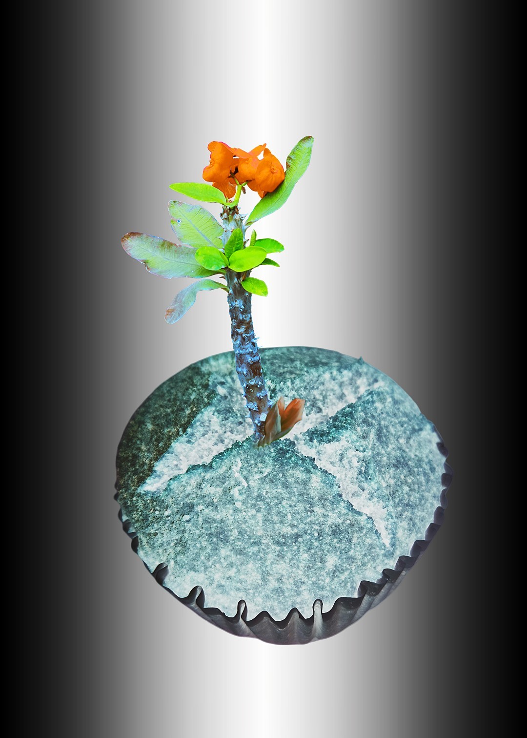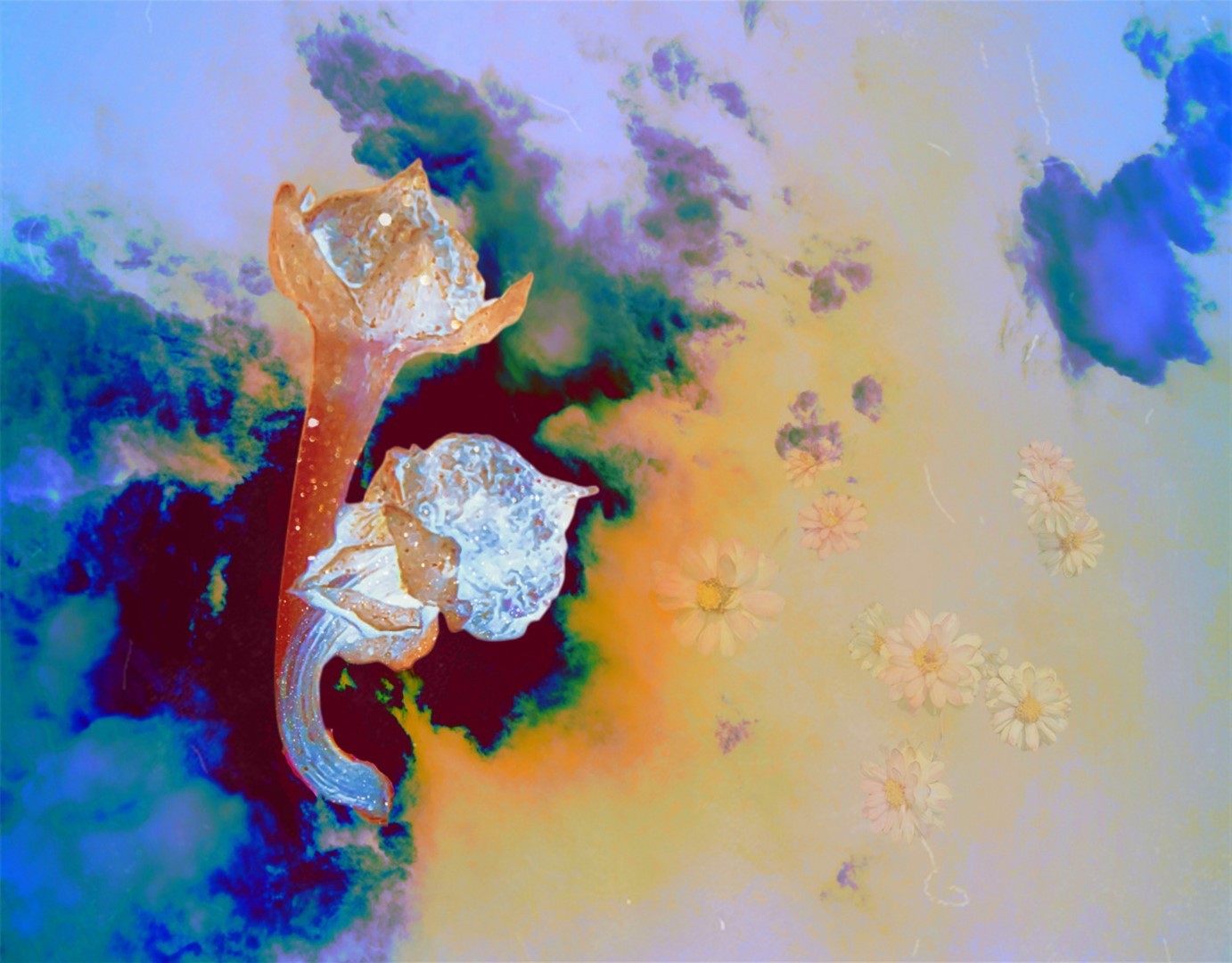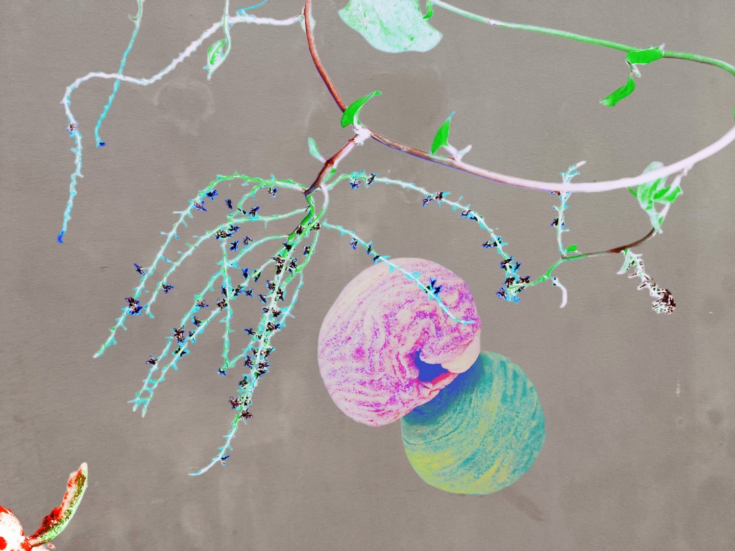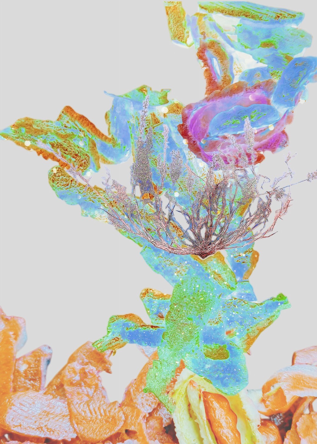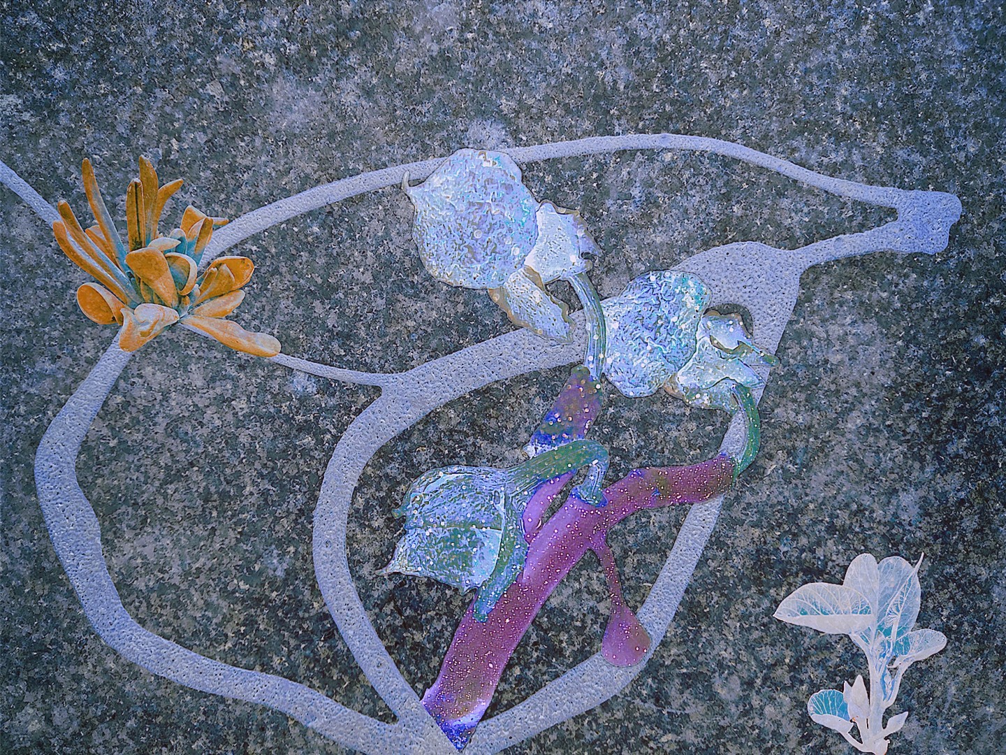 y-55 to y-59 "Fallen Leaves at Home": All five photos in "Fallen Leaves at Home" were taken on my home terrace. It was a day in the summer of 2022 when our community was suddenly locked down. All residents were forbidden to leave their homes except for daily nucleic acid testing at a designated time and place. A neighbor, whose house was separated from mine by one building, couldn't even go downstairs for the test. The occurrence of this event was without any notification or announcement. Neighbors could only guess that a positive case was detected in the building that couldn't go downstairs for the test. The lockdown of the community has happened many times in the city where I live, so I was very calm during the first three days. When I went downstairs for the test and waited in line, I would sneak pictures of the flowers planted by my neighbors (the control staff did not allow us to take pictures, fearing cross-contamination). We spent three peaceful days like this, and everyone's test results were negative.